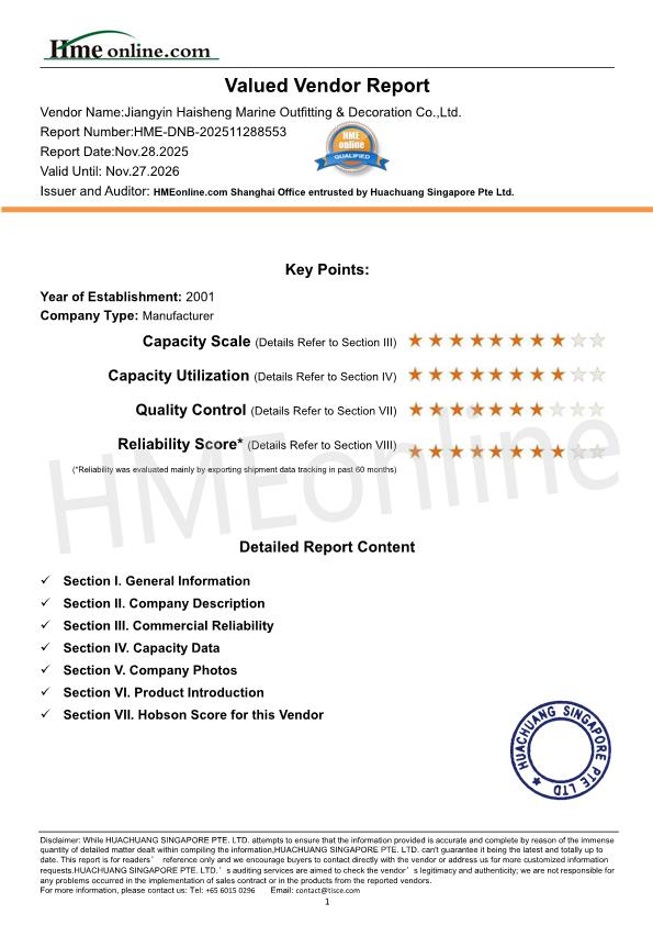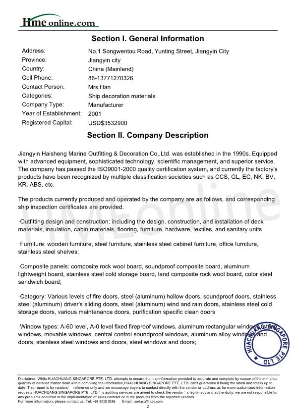 Jiangyin Haisheng Marine Outfitting & Decoration Co.,Ltd.